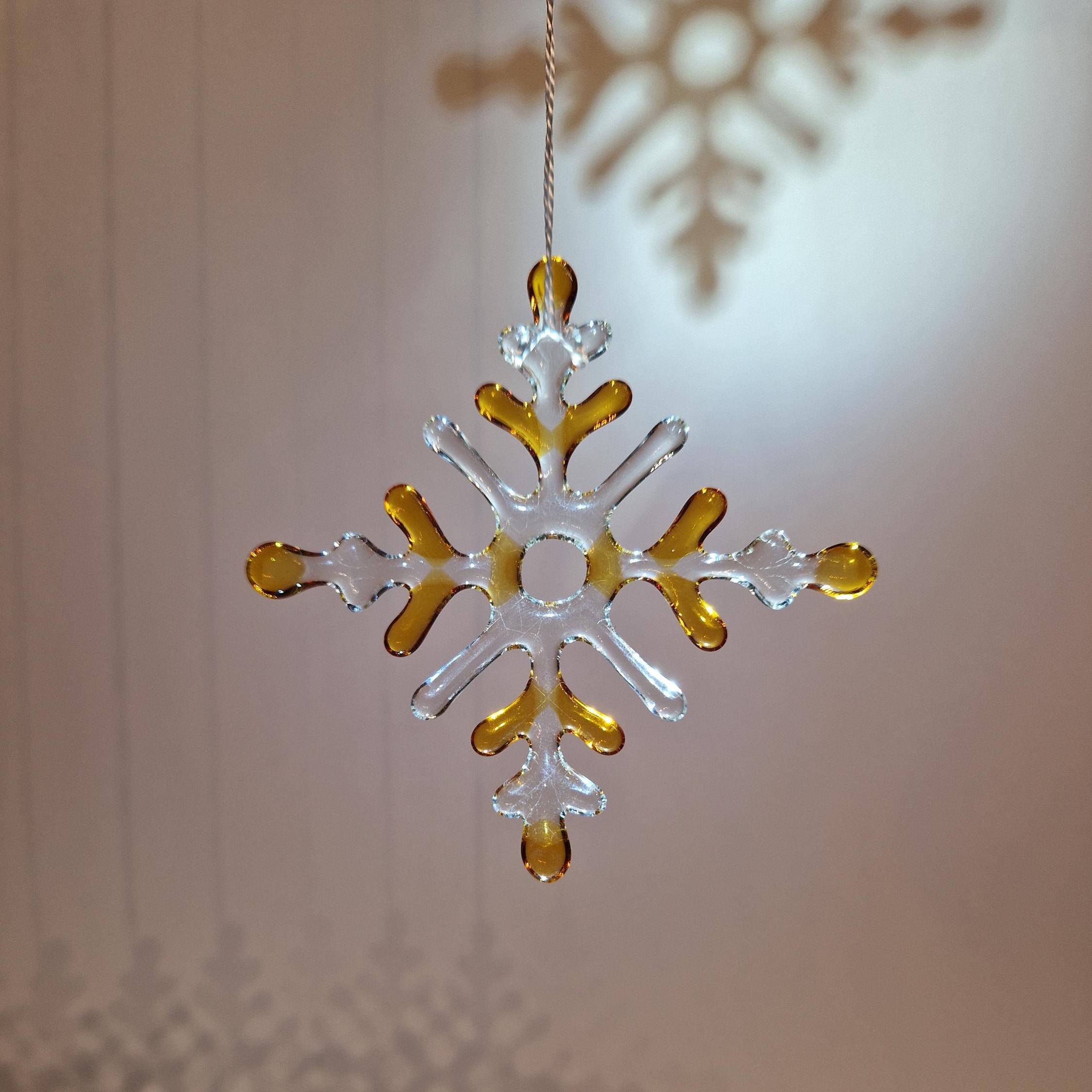 A delicate handmade glass snowflake that sparkles in the light - perfect for adding winter charm to your windows or gifting during the festive season. Crafted with care in fused glass, each piece is unique and full of seasonal magic.